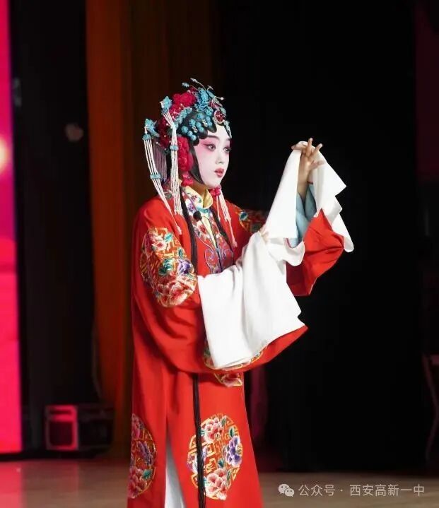 高一8班王一涵同学表演京剧《锁麟囊》:程腔幽咽,水袖翩跹,“悲欢离合处,尽显恩义重如山”,唱响人间至情至性,彰显传统文化魅力。